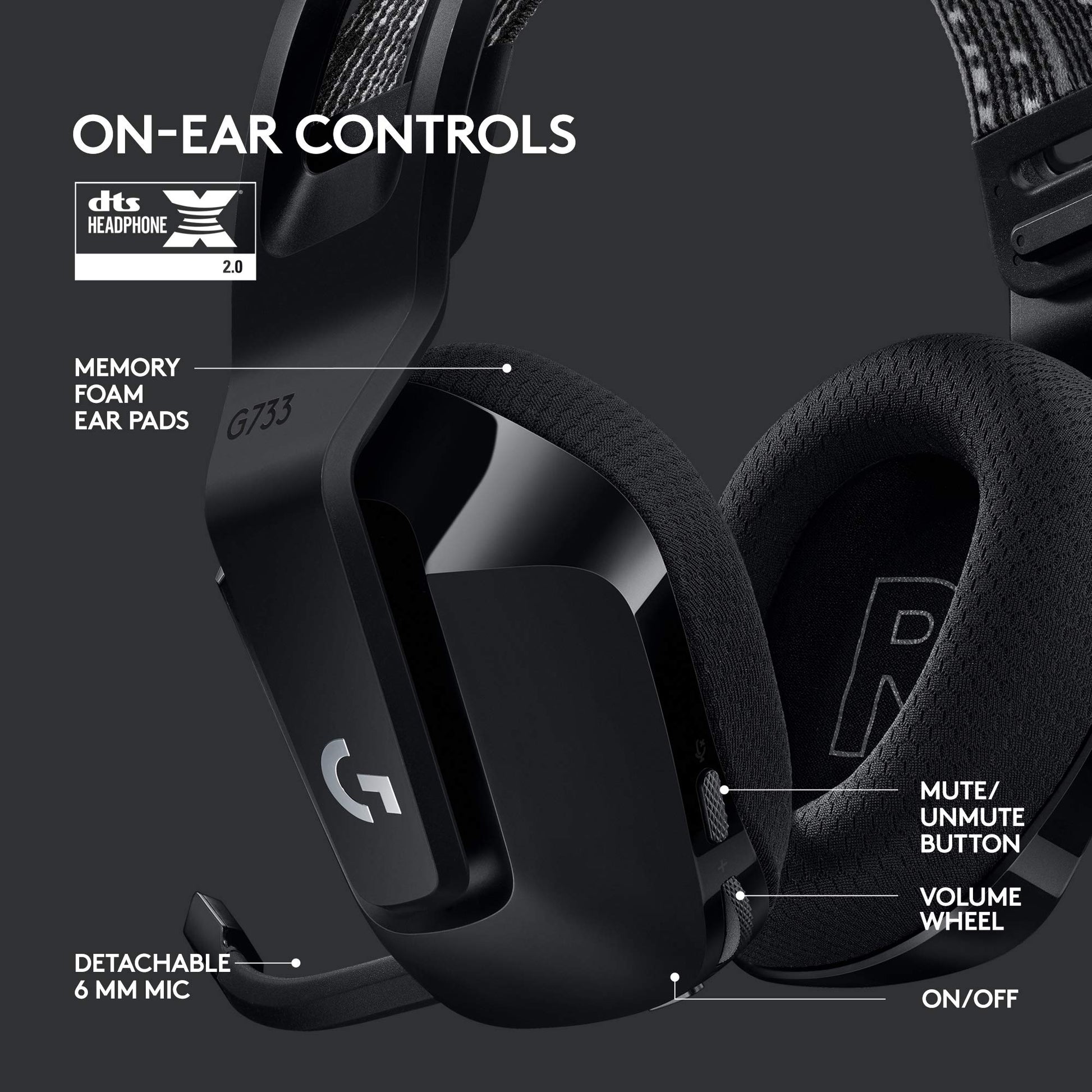 Logitech G733 Lightspeed Wireless Gaming Headset, Suspension Headband, Lightsync RGB, Blue VO!CE Mic, PRO-G Audio – Black, Gaming Headset Wireless, PC, PS5, PS4, Switch Compatible
